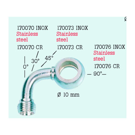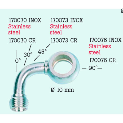 Banjo latéral de tube avant à 30 degrés pour motos, diamètre 10 mm, finition chromée.
