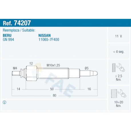 Bujía de precalentamiento FAE 74207