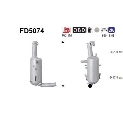 Filtre à particules/suie, système d'échappement AS FD5074 AS FD5074