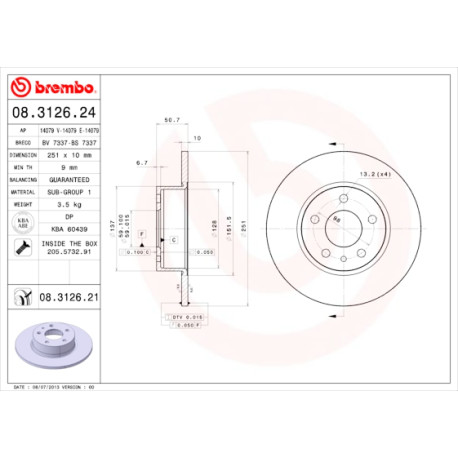 Jeu de disques de frein BREMBO 08.3126.24