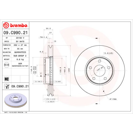 Jeu de disques de frein BREMBO 09.C990.21 BREMBO 09.C990.21